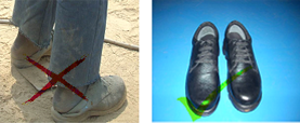- If shoes are tattered and worn or the toes are poking through the sides or the steel toe is visible through the leather.