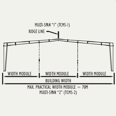 This is defined as the distance between the outside flanges of endwall columns in the opposite endwalls, and is a combination of several bay lengths.