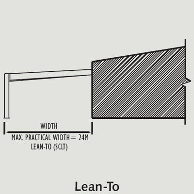 Building width is defined as the distance between the outer side of an eave strut of one side wall to the outer side of an eave strut of the opposite side wall.