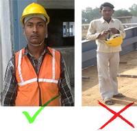 - Damaged/worn-out Safety Shoes, Safety Helmets, Reflective Jackets should be discarded immediately from the site as per the manufacturer instructions