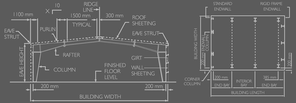 Interarch pre-engineered buildings are custom-designed to meet your exact requirements. The basic parameters that define a pre-engineered building are: